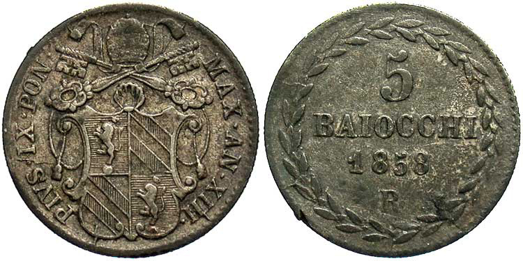 Mantled bust of Pius IX left, wearing zucchetto, date below