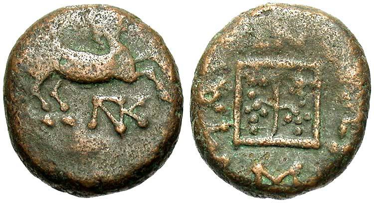 The reverse of this example copies the subsequent period, S-G period VIII, where the magistrate's name is around the outer border.