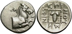 Local imitation of Thrace-Maroneia, AR Triobol (Persic Standard), c.4th-3rd Centuries BC, "Ilistoleu" as Magistrate