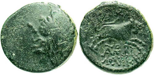 Trajan, AE23, 106-107, Phoenicia-Aradus. No legend. Head of Astarte at