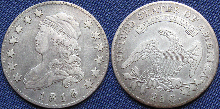 United States of America, Quarter Dollar, Capped Bust, With Motto, 1818, Philadelphia Mint
