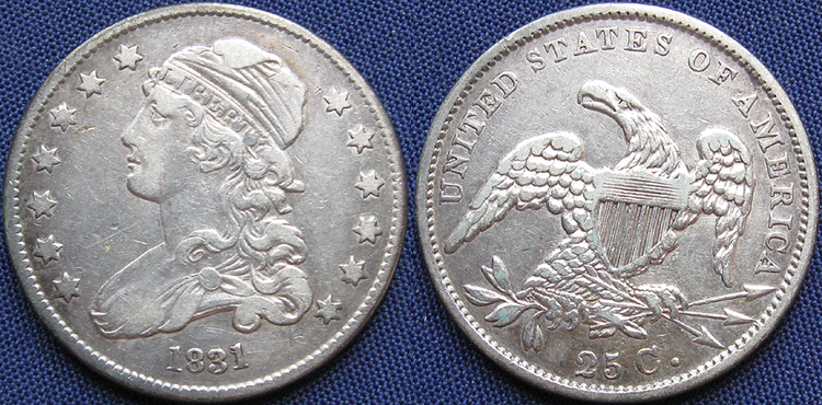 Quarter Dollar, Capped Bust, Without Motto, 1831, Philadelphia Mint