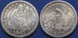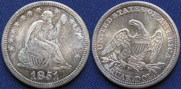 Quarter Dollar, Seated Liberty, With Drapery, 1851, Philadelphia Mint