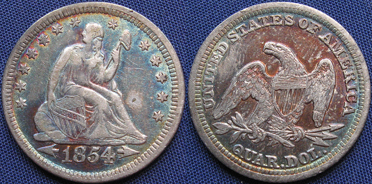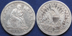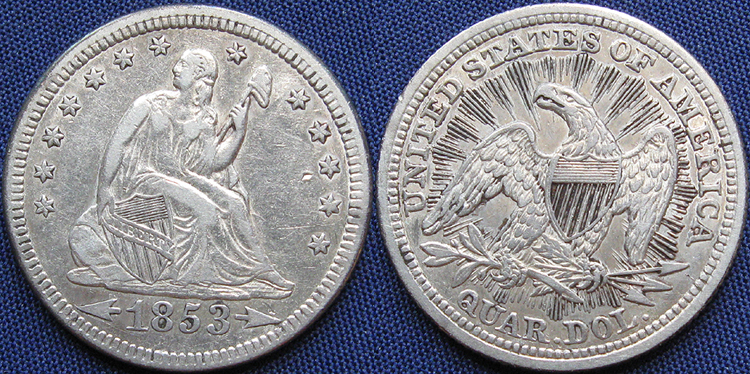 Quarter Dollar, Seated Liberty, Arrows at Date, Rays on Reverse, 1853, Philadelphia Mint