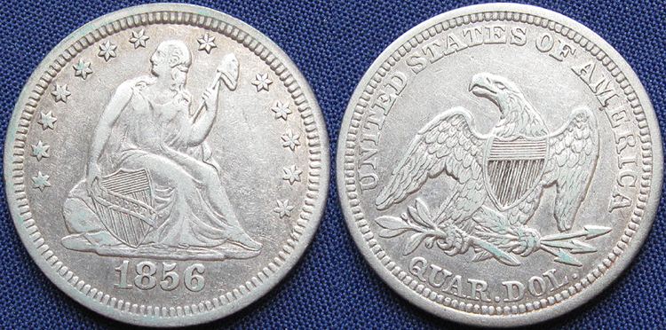 Quarter Dollar, Seated Liberty, Arrows at Date Removed, 1856, Philadelphia Mint