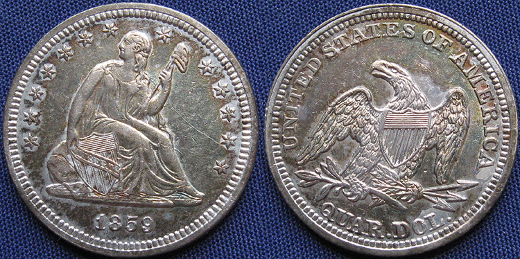 Quarter Dollar, Seated Liberty, Arrows at Date Removed, 1859, Philadelphia