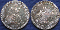 Quarter Dollar, Seated Liberty, Arrows at Date, Rays on Reverse Removed,