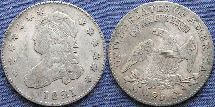 United States of America, Quarter Dollar, Capped Bust, With Motto, 1821, Philadelphia Mint