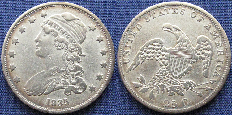 Quarter Dollar, Capped Bust, Without Motto, 1835, Philadelphia Mint