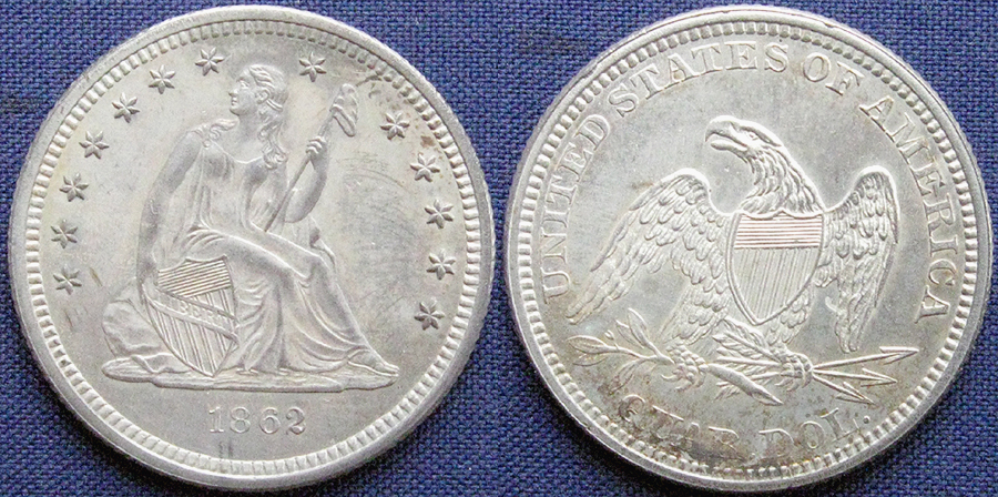 Quarter Dollar, Seated Liberty, Arrows at Date Removed, 1862,